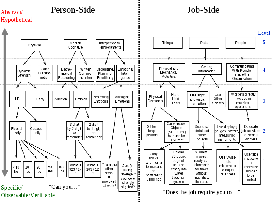 For many personnel applications, the ability to draw meaningful, level-sensitive comparisons between task-dissimilar jobs is essential. These include functions as diverse as developing compensation systems, assessing work similarity to assign job titles or for career guidance, estimating worker requirements, and identifying occupations that workers with disabilities can perform.